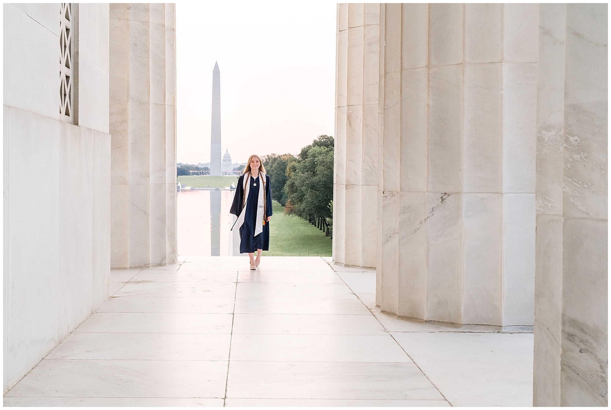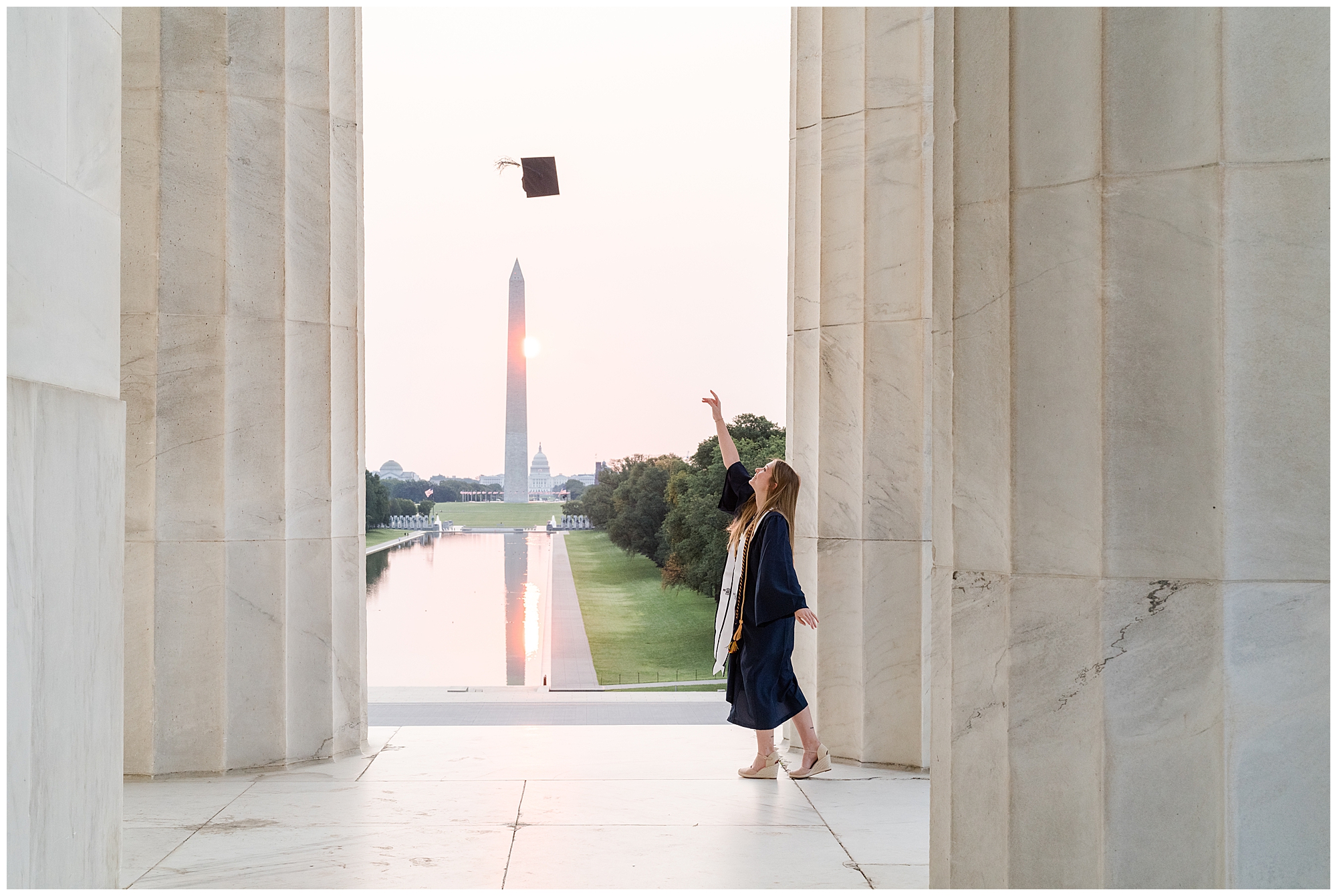 When Anna graduated from The George Washington University, she wanted to have her DC graduation photography session at the Lincoln Memorial. This is one of my favorite locations and the best time to shoot here is sunrise. Later in the day, this location gets pretty crowded! Plus, the early-morning light just glows on that white marble.