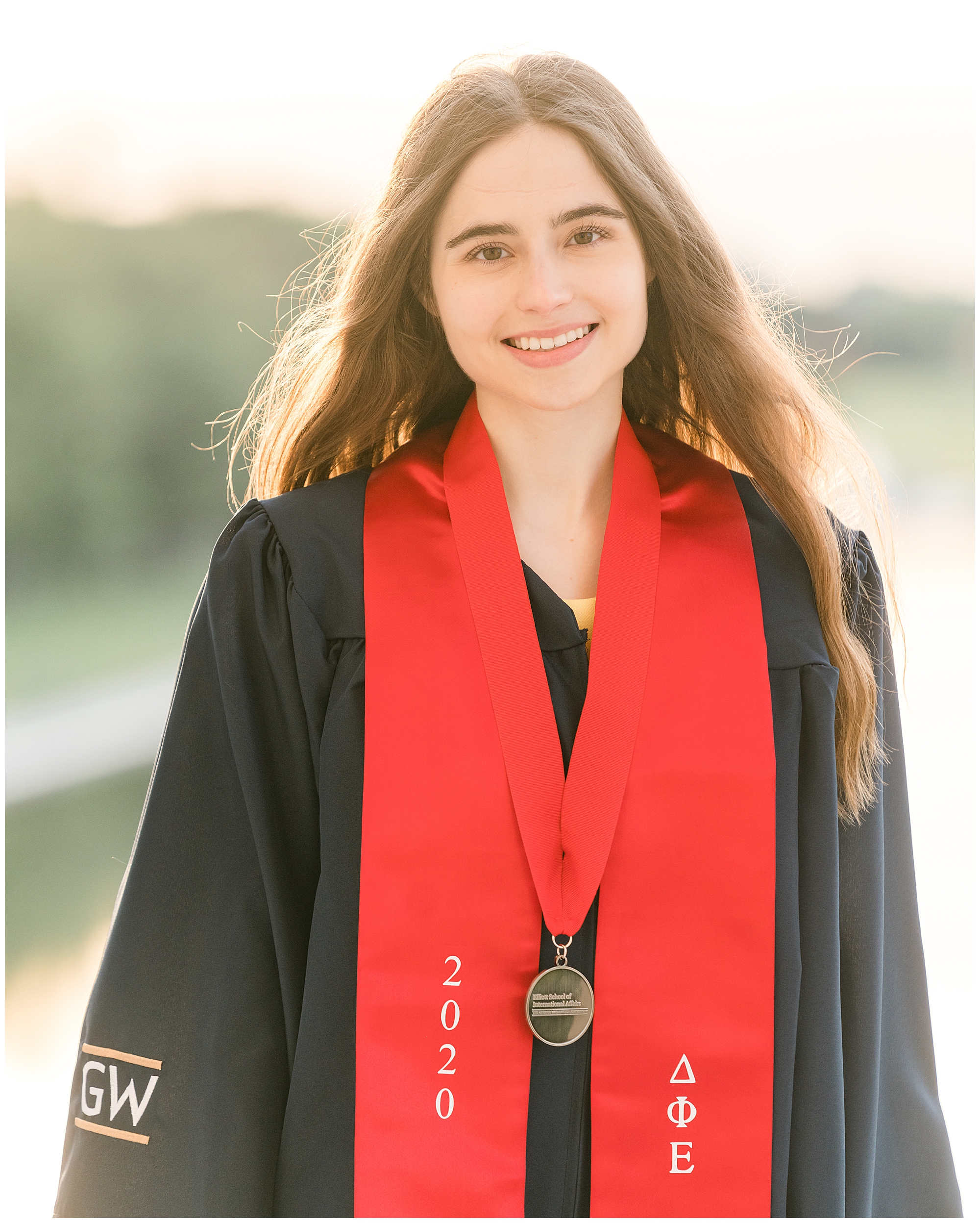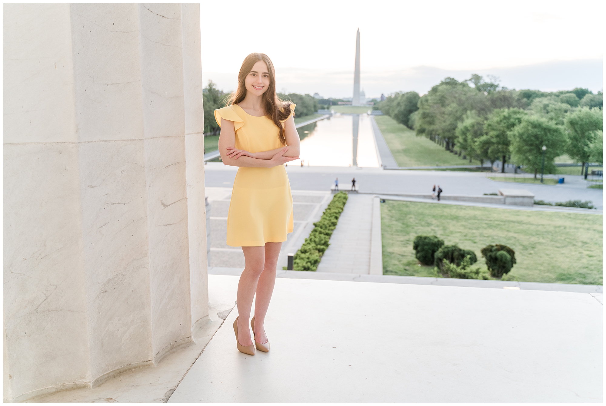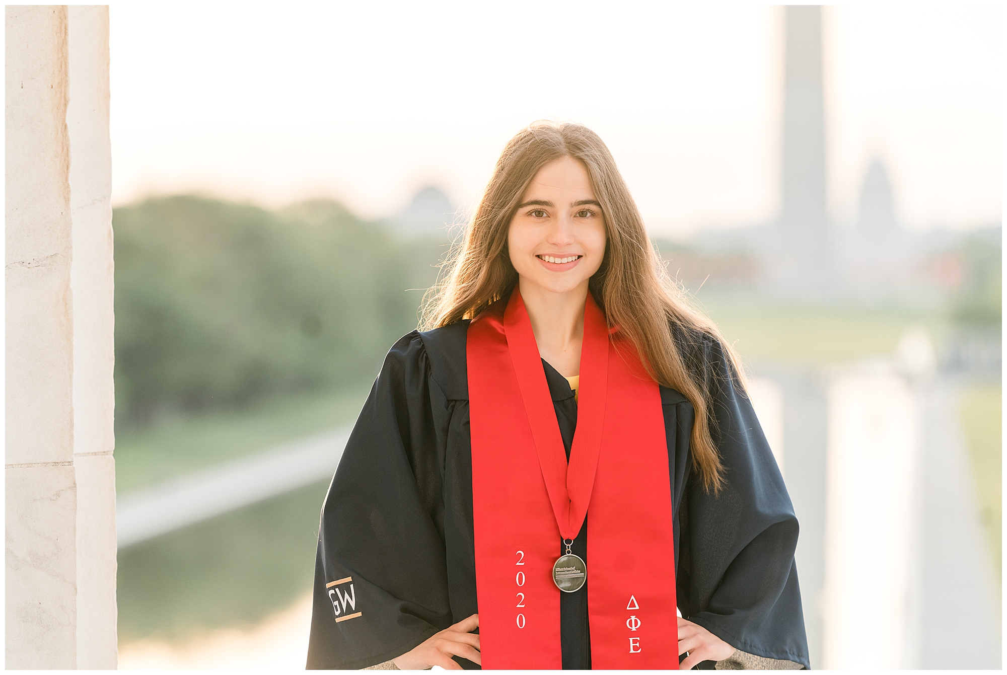 Brooke celebrated her college journey with a GW graduation photo session, scheduled bright and early at the Lincoln Memorial to take advantage of best light and avoid crowds.