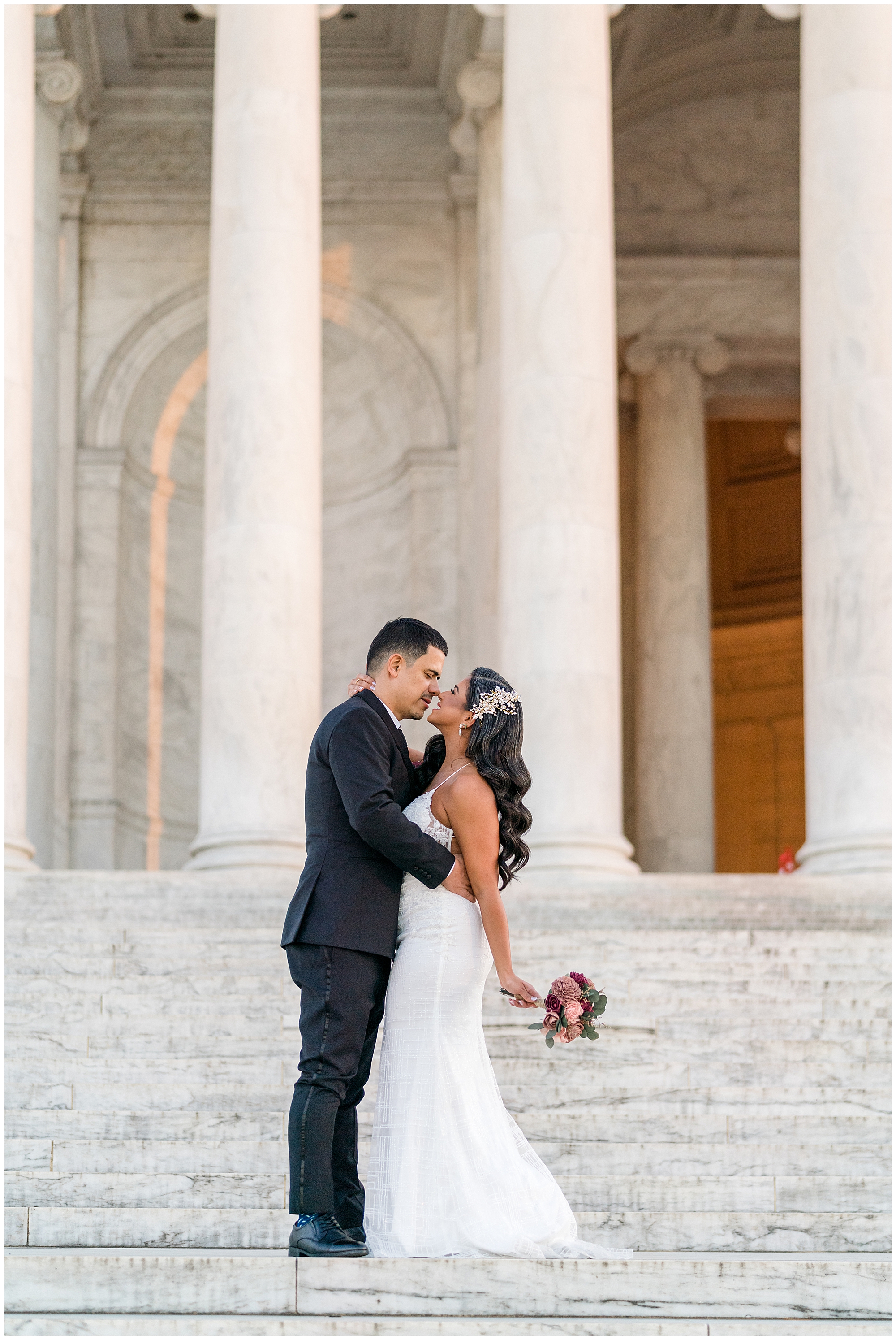 Paola and Alex met each other while working in Washington, D.C. and wanted to celebrate their marriage with a photo session at one of the city’s most iconic sites. After they tied the knot at a Maryland courthouse, the newlyweds met me for a photo session at the Jefferson Memorial.